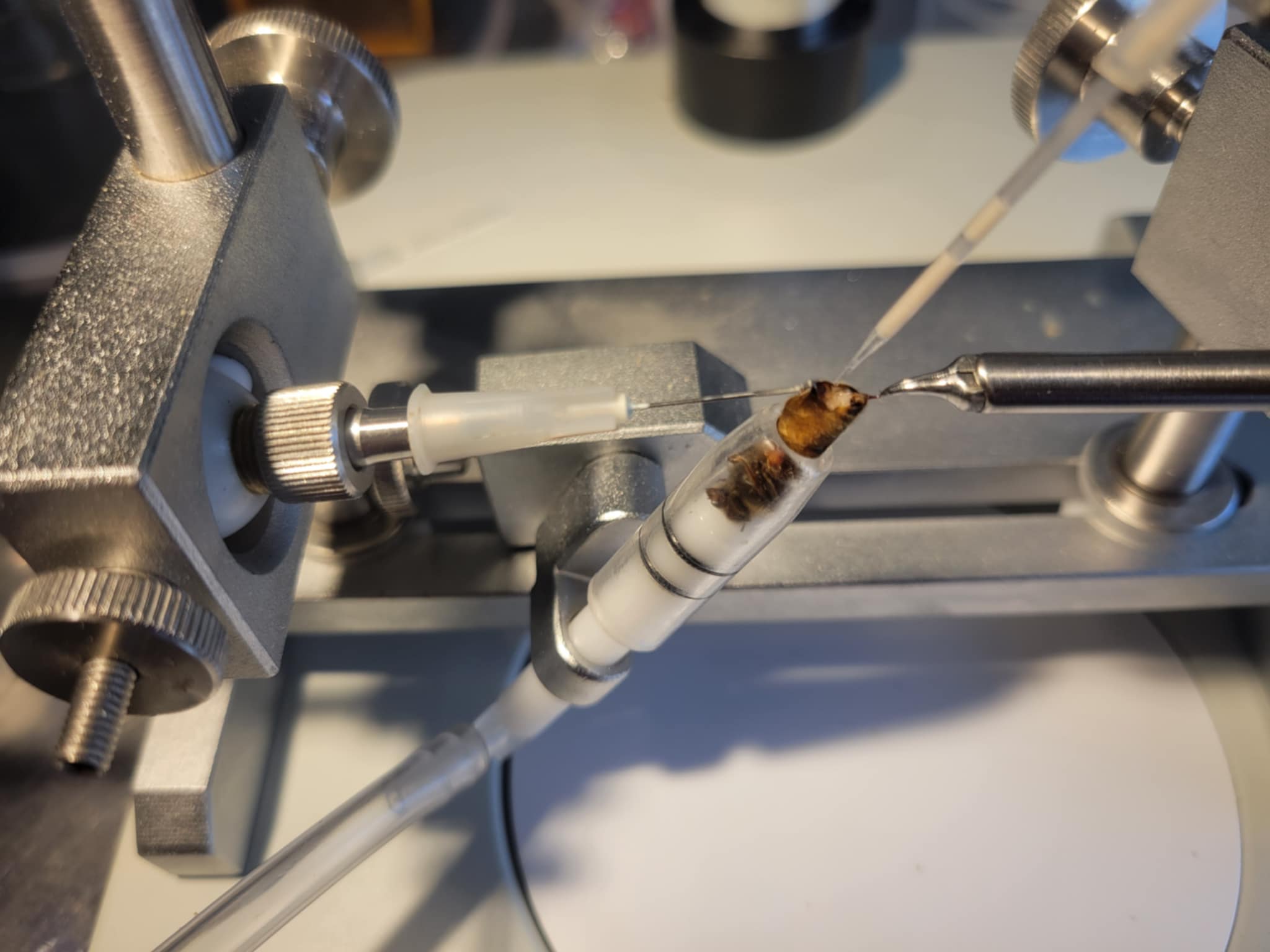 Sélection de lignées de reines en collaborant avec des apiculteurs expérimentés locaux. Le recours à l’insémination instrumentale est un outil indispensable pour fiabiliser les fécondations.